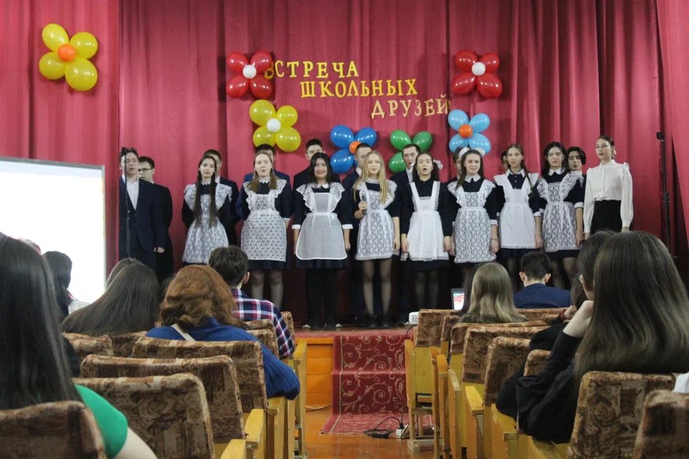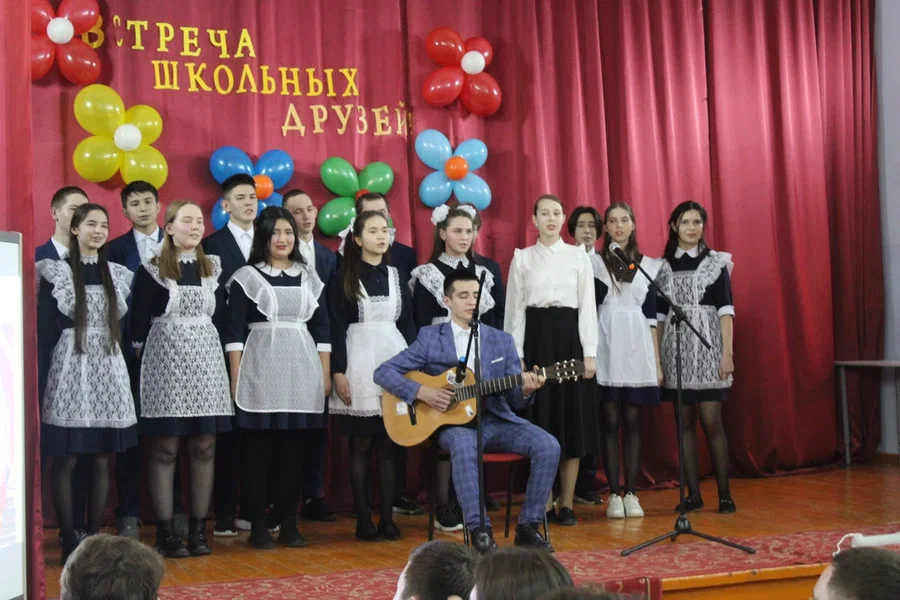 Праздничный вечер был завершен песней «Изгиб гитары желтой» в исполнении обучающихся 11классов, учителей, учеников школы и которую подхватили все гости праздника. Прощаясь, они благодарили за замечательный вечер, за минуты радости от встречи с детством.