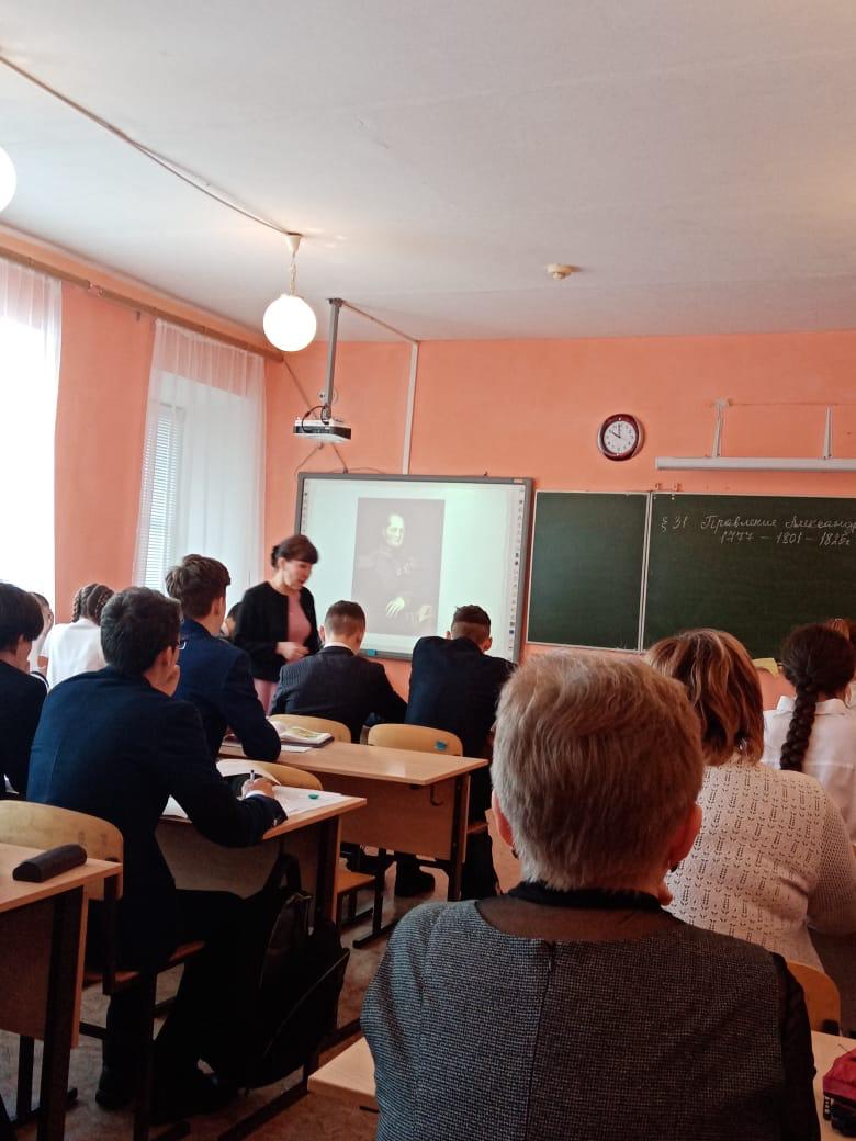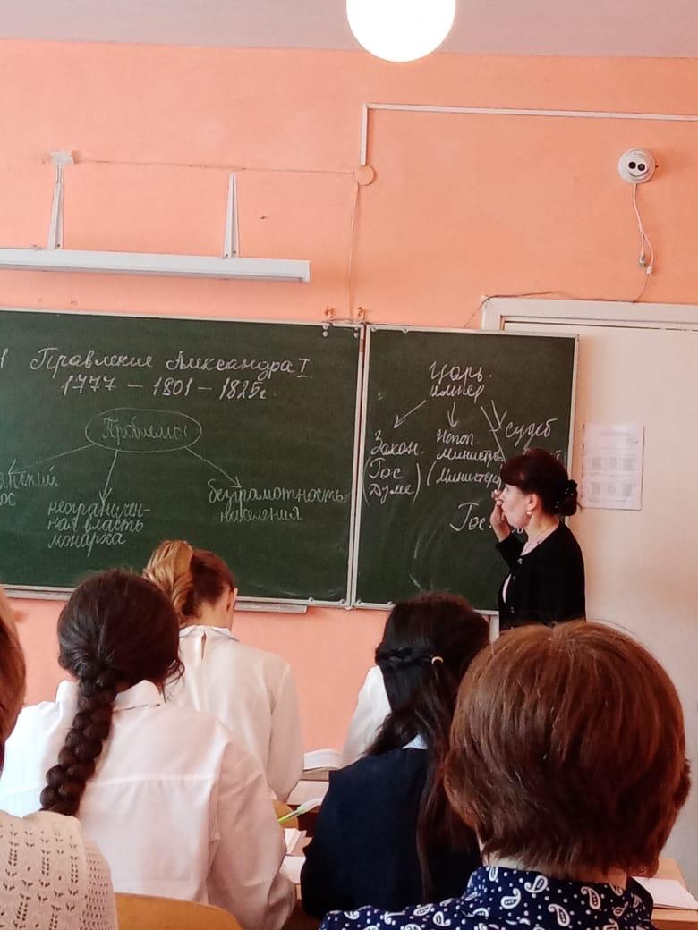 11 марта 2020 года в МБОУ СОШ №1 с.Верхние Татышлы прошло заседание Районного методического объединения учителей истории и обществознания. Сафина Р.К. показала открытый урок в 10 классе на тему: «Правление Александра I». Задачи данного урока: ознакомить обучающихся с основными направлениями внутренней политики Александра I, развивать умение делать выводы и обобщать материал, работать с историческими источниками, грамотно аргументировать свои высказывания, воспитывать уважительное отношение к истории России, чувство гордости за соотечественников. Десятиклассники активно работали на уроке, отвечали на вопросы, показали умения грамотно формулировать свои мысли, взгляды, делать соответствующие выводы.