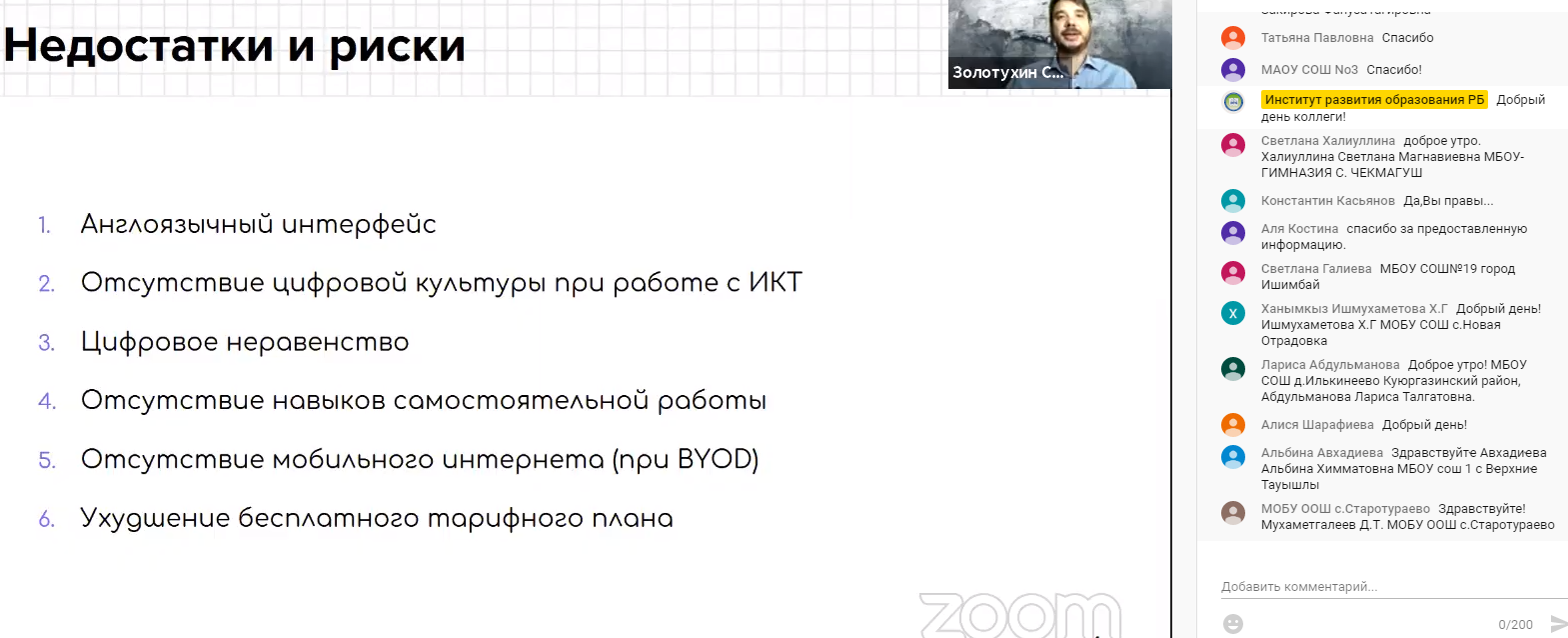 На базе ГАУ ДПО ИРО РБ 2 ноября 2020 года в режиме онлайн на 1 методической площадке «Современный учитель в цифровом мире: теория и практика» прошла дискуссионная площадка.