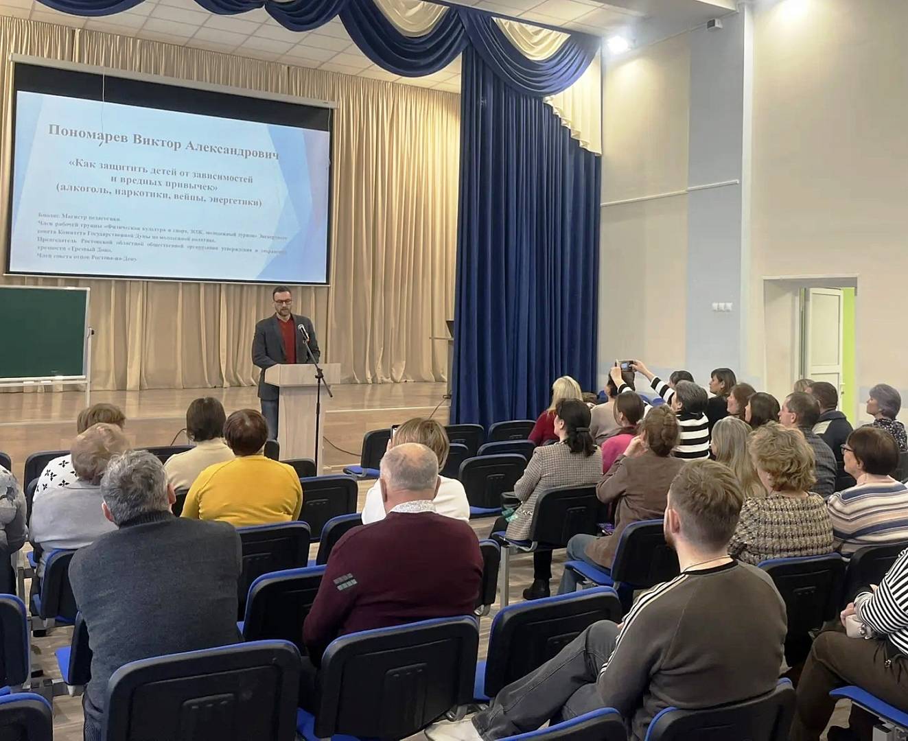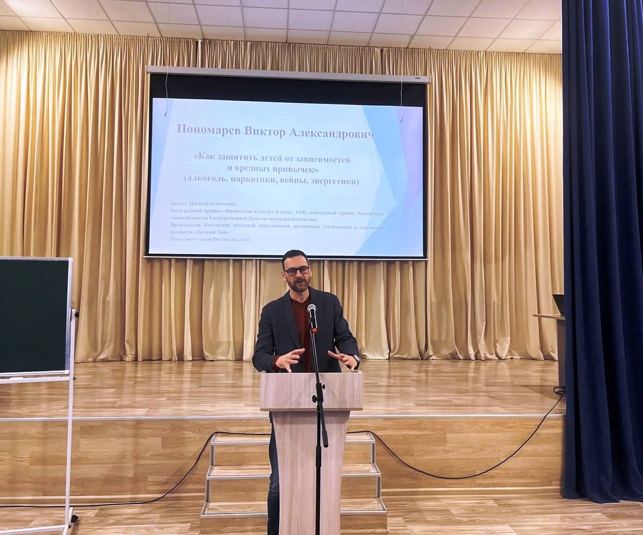8 января на базе Гимназии имени Гали Сокороя состоялась встреча с Виктором Александровичем Пономаревым- членом экспертного совета Государственной Думы по молодежной политике, педагогом по профилактике зависимостей, психофизиологом, председателем общественной организации «Трезвый Дон». В ходе беседы были выделены ключевые принципы защиты детей от зависимостей, основанные на сознательном выборе, а не на запретах.